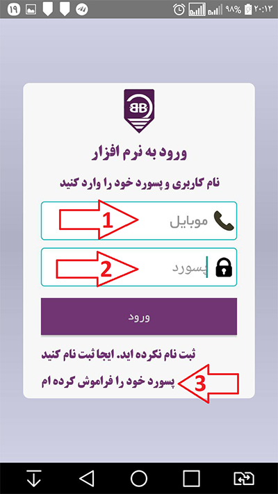 4-دگمه "ورود" را بزنید.(دگمه بنفش رنگ)